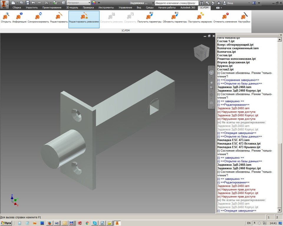 - Операция «редактирование»: в протокол записывается информация о моделях, недоступных для редактирования ( отсутствие прав пользователя на запись, взятые на изменение другими пользователями).