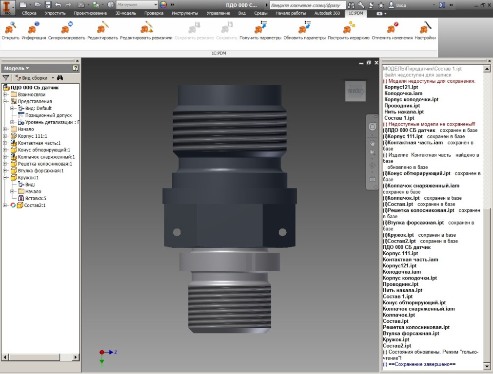 - Операция «сохранение»: информация о сохраненных и несохраненных моделях, о стандартных деталях из библитек, сообщение о наличии в базе аналогичной модели, если отрабатывается проверка уникальности.