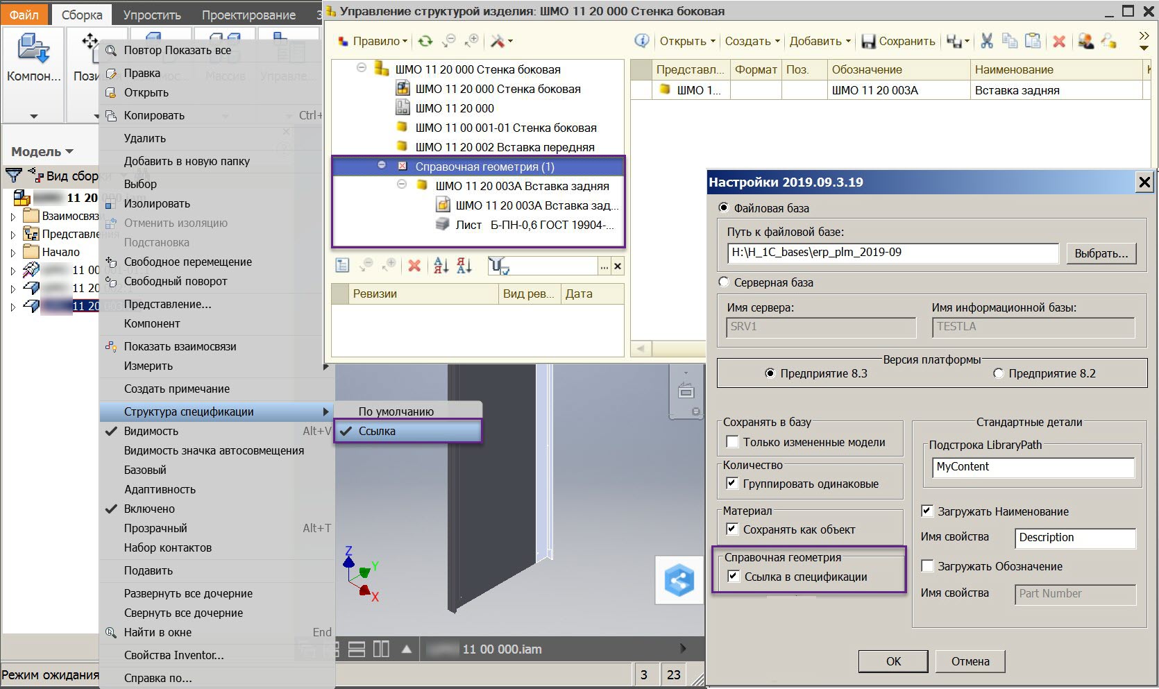 - загрузка элементов, участвующих в составе изделия в качестве вспомогательных по специализированной связи «Справочная геометрия». Такой механизм позволяет иметь актуальную, с точки зрения производства, ЭСИ, одновременно сохраняя в своем составе информацию о справочных компонентах модели, таких как: сварные швы, развертки листовых деталей и т.д.