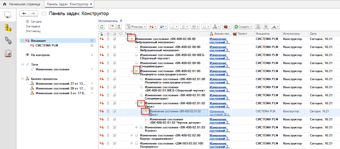 Добавлено построение иерархии задач по бизнес-процессу согласования (изменения состояний) в соответствии со структурой изделия/технологии.