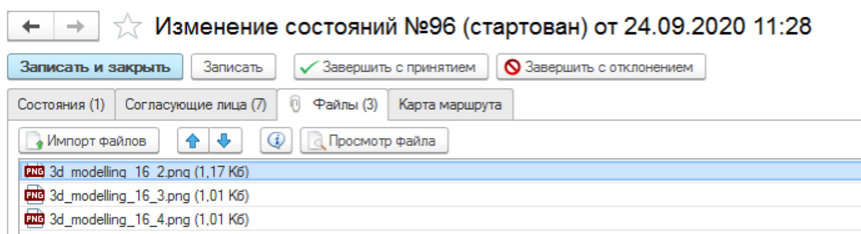 Добавлена закладка Файлы для добавления сопутствующих файлов по бизнес-процессу (копия протокола совещания, приказа и др.). Файлы может добавлять Инициатор (или Администратор) до завершения бизнес-процесса. В заголовки закладок выведено количество согласуемых элементов (документов), согласующих лиц/групп, файлов.
