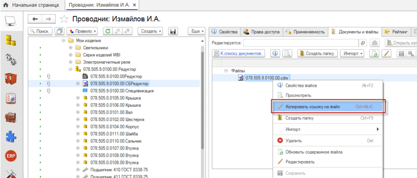 В списке файлов документа в контекстном меню появилась кнопка «Копировать ссылку на файл» для быстрого получения навигационной ссылки на конкретный файл.